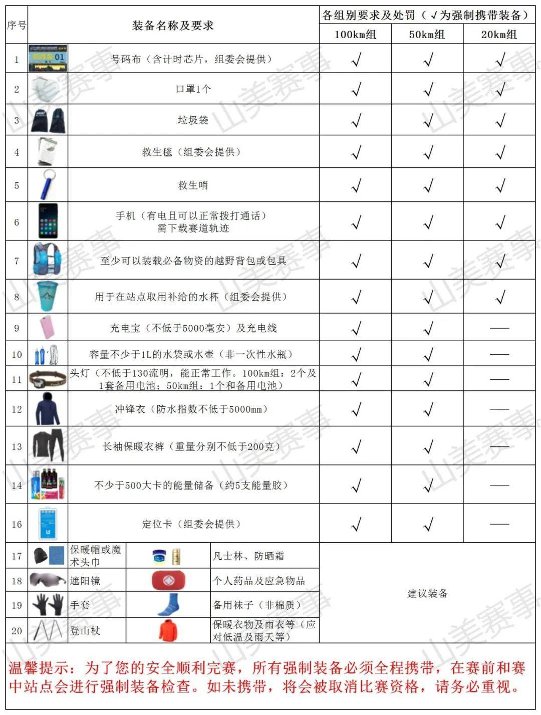 领物强装检查:领物需进行强制装备检查,缺少或检查不合格,赛事组委会有权拒绝发放参赛包;
