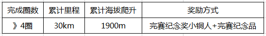 4.个人挑战组和双人挑战组根据完赛圈数设置完赛金奖、完赛银奖、完赛铜奖,奖品为小金人、小银人、小铜人;个人体验组有完赛纪念奖项——小铜人。