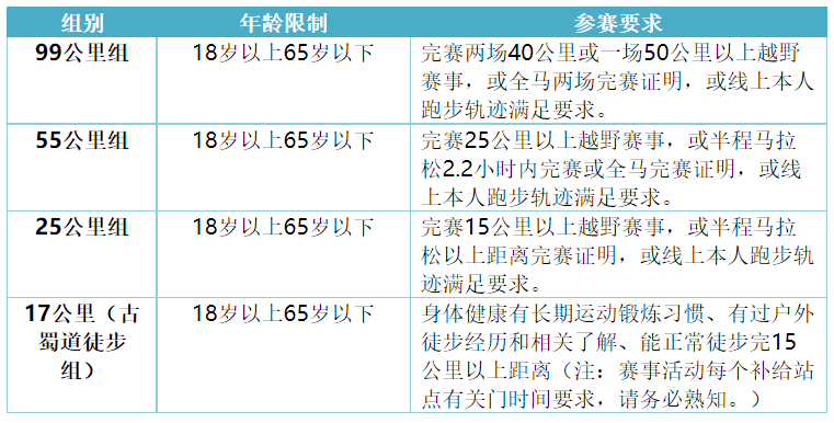 注: 以上组别名次装备奖品由KINETIK运动品牌提供,录取各组别男女前6名给予不同鼓励,另17公里古蜀道徒步组不设名次奖励,赛事以安全快乐健康的越野跑体验为宗旨,不提倡追求竞速现金奖励请予理解。