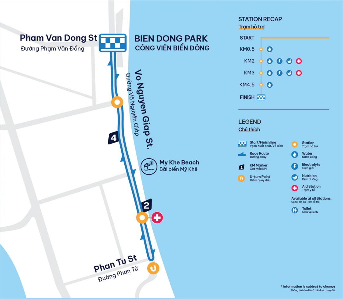 比赛起终点均为:Bien Dong Park, Da Nang City.