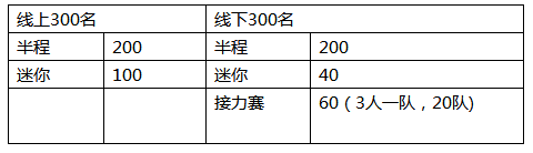 3.半马接力赛:21.0975km 20队(每队3人,至少1名异性)