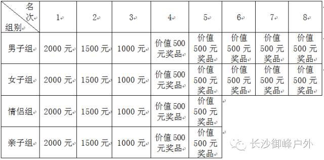 女子、男子取前8名,亲子、情侣取前5名,获奖运动员颁发证书及奖金、奖品。